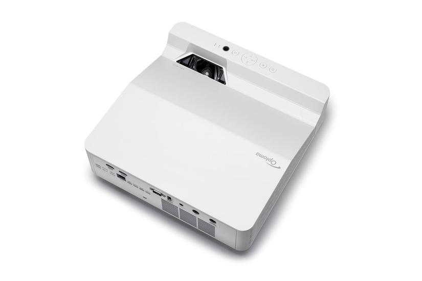 Med Optoma ZH430UST ultrakort kast DLP-projektoren bringes dine film- og præsentationer til live i en høj opløsning og farvemætning. Oplev en usammenlignelig billedkvalitet, der projicerer klare og skarpe billeder i 3D på en ultra kort afstand. Den hvide